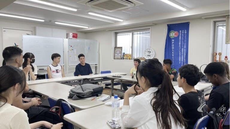 Primeiramente, criamos um local para que as crianças que acabaram de chegar ao Japão aprendam a língua japonesa e possam se comunicar primeiro e depois ingressar no ensino médio.